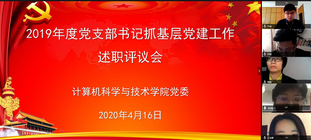 进一步提高党支部书记履职能力,推进落实党建工作,按照学校党委工作安排,计算机学院党委于4月16日以网络视频会议形式召开2019年度党支部书记抓党建工作述职评议会,学院党委委员、全体党支部书记、师生党员和群众代表共55人参会。会议由学院党委书记宋鸿鹰主持,校巡察办主任陈华列席督导。