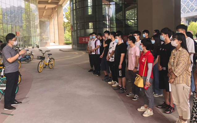 此次应急演练结合学院实际,分为室外、进入宿舍或教学楼、室内上课三个场景模拟。在室外演练中,学院团委书记、学工办主任田旭向全体辅导员、学生骨干代表在室外讲解、模拟出现发热情况时的应急处置流程。在进入教学楼环节,辅导员指导学生正确通过学院入口人脸识别闸机系统,并告知进出教学楼、宿舍楼时一人一通过、严禁串楼或尾随、闸机报警情况处理等事项和应急处置流程。