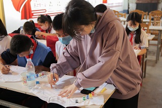 此次实践行活动由永利官网计算机科学与技术学院全媒体中心与七里海俵口镇合作举办。学院全媒体中心指导教师何佳彤带领学生骨干组成实践小组于前往俵口镇七里海文明示范村兴家坨村开展了“野生动物手绘大课堂”活动,共有20余名村小学生参加活动。实践小组成员充分发挥个人特长和专业优势,耐心向小学生们在黑板上示范绘画过程,讲解绘画基本常识和要点;讲解野生动物保护知识,手把手带领小学生共同将鲨鱼、海星等珍稀野生动物绘制在白T恤上,并一起用签名、手印等形式为活动留念。通过生动的实践活动教育引导小学生应从小树立尊重自然、顺应自然、保护自然的生态文明理念。