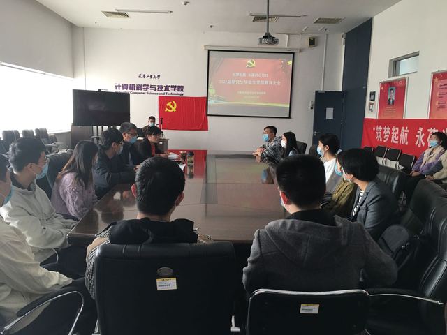计算机科学与技术学院党委组织研究生毕业生党员教育活动,旨在通过仪式感教育使毕业生党员进一步坚定理想信念,增强责任意识和组织观念,为今后更好适应新环境打下坚实的思想基础,并希望他们带着组织嘱托开启人生新的航程,不忘初心,牢记使命,担当奉献,永远奋斗,为祖国繁荣富强和中华民族伟大复兴贡献自己的青春力量。