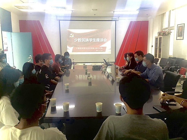 为进一步促进中华民族一家亲、同心共筑中国梦的良好氛围,全面了解少数民族学生学习、生活的状况,更好地为少数民族学生解忧助困,不断提升少数民族学生教育管理水平,9月27日在软件园C102召开了少数民族学生座谈会,党委书记闫凡雷,辅导员田旭、王宝晴,以及少数民族学生代表20余人参加了本次座谈会。