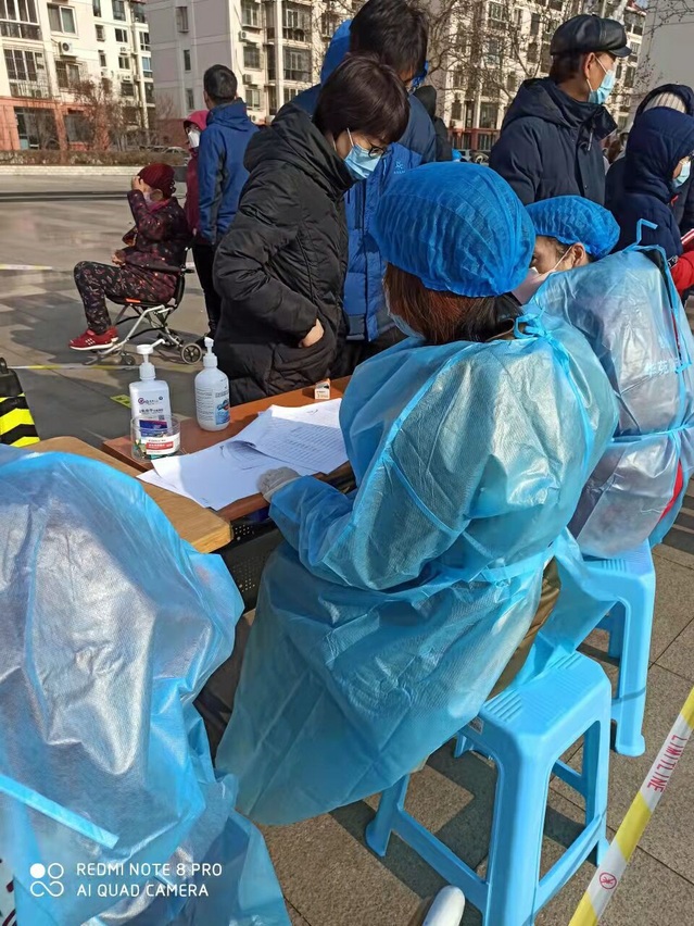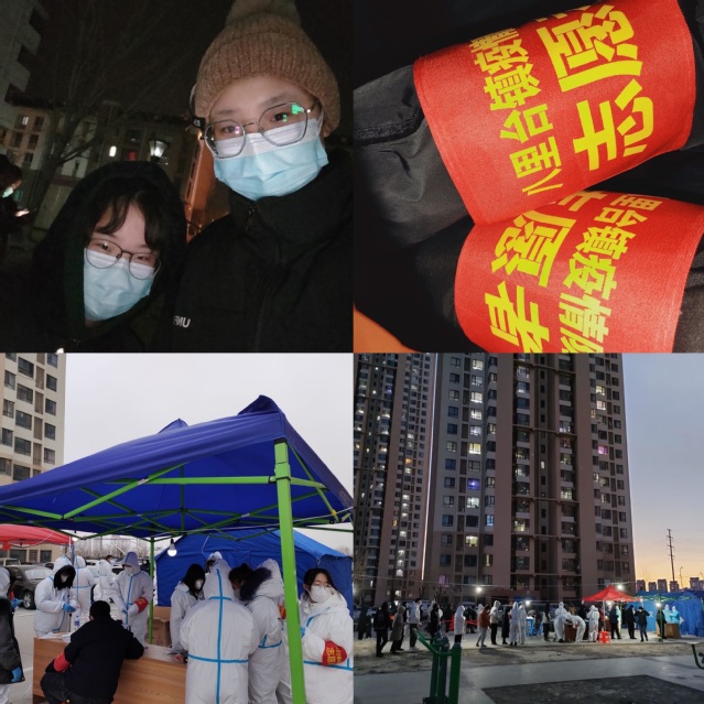计算机系党支部书记董卿霞先后老师两次参加程华里社区核酸检测工作,从早晨九点半到晚上十点半,负责检测人员信息登记和现场秩序维护,帮助老年人用手机登记信息。天气很冷,冻得手都没有知觉了,但当居民送来热水和暖贴过来时,觉得一切都是值得的。“作为一名党员,就应当义无反顾地投身到防疫志愿服务中,做伟大抗疫精神的践行者,天津一定赢”。这是董卿霞战“疫”心声。