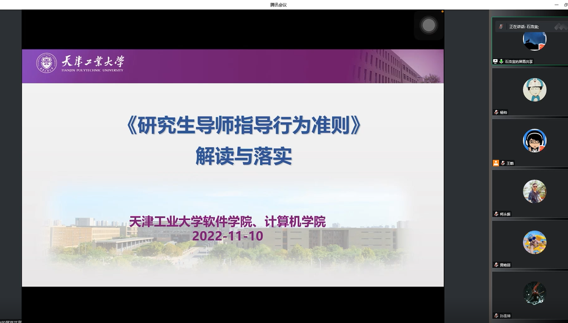 为深入学习贯彻习近平总书记关于研究生教育工作的重要指示和全国研究生教育会议精神,全面落实研究生导师立德树人根本任务,推动研究生导师队伍建设,促进研究生导师自身素质、指导水平和培养质量的提升,根据《教育部关于全面落实研究生导师立德树人职责的意见》《研究生导师指导行为准则》等文件精神,永利官网以“加强研究生导师队伍建设,推进研究生教育高质量发展”为主题,开展了研究生导师队伍建设专题培训。根据本次培训的课程安排,304am永利集团官网和软件学院与2022年11月10日召开了“《研究生导师指导行为准则》解读与落实要点”研讨会。