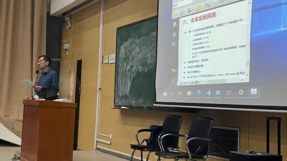 接下来,304am永利集团官网副院长柯永振教授,做了题为“ChatGPT现象的一些思考”的报告。柯教授从ChatGPT对社会发展的影响、ChatGPT的应用场景、风险应对、未来发展的预测等方面分享了一些自己的思考。柯教授鼓励大家要勇于创新,希望“我们也能做出引领产业发展的类ChatGPT应用”,期望同学们能为天津发展人工智能大模型贡献自己的力量。