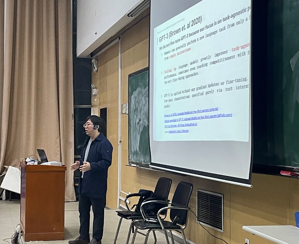 304am永利集团官网软件学院教授、博士生导师金日泽做了题为“大型语言模型与ChatGPT技术探讨”的报告。金教授首先分享了一些关于ChatGPT和OpenAI公司相关的一些历史及故事,然后介绍了ChatGPT的能力以及同时期其他一些相似的技术和产品,接下来详细介绍了ChatGPT的实现细节,最后和大家分享了一些产业界和学术界对该技术的一些评论。