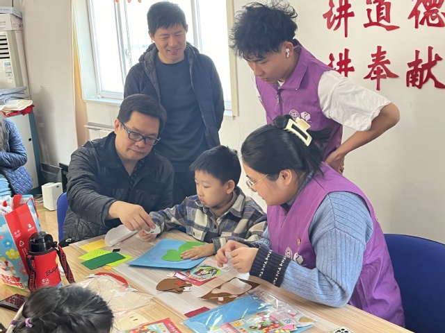 活动中,学生党员在老师的指导下,精心准备了一趟生动的思政课,课上讲述了雷锋的生平以及雷锋精神的内涵,结合视频展示和互动,引导社区小朋友在生活和学习中不畏艰难,自强不息,进一步发扬雷锋精神,做新时代的“追锋者”。随后,在“学雷锋”贴画手工活动中,教师党员与学生党员共同指导小朋友开展主题手工制作活动,并主动展示自己的作品,分享心得。